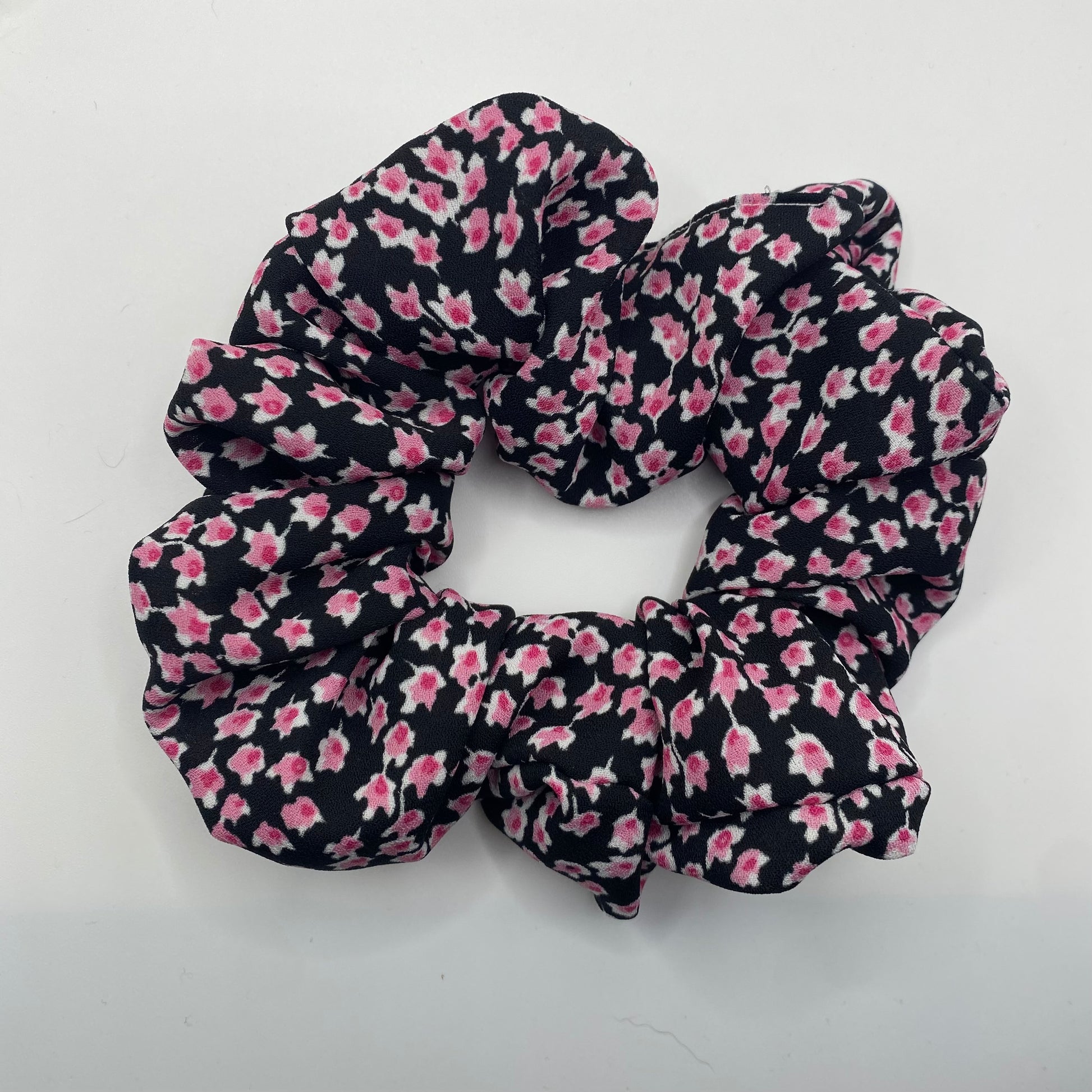 Black and Pink Floral Scrunchie