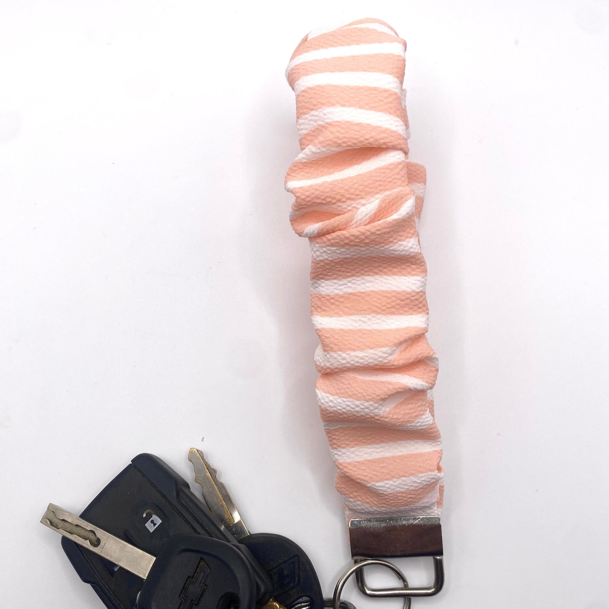 Tired of digging through your bag for your keys? This 6-inch hand-sewn keychain wristlet is the perfect solution—designed to slip easily over your wrist so your keys stay right where you need them.